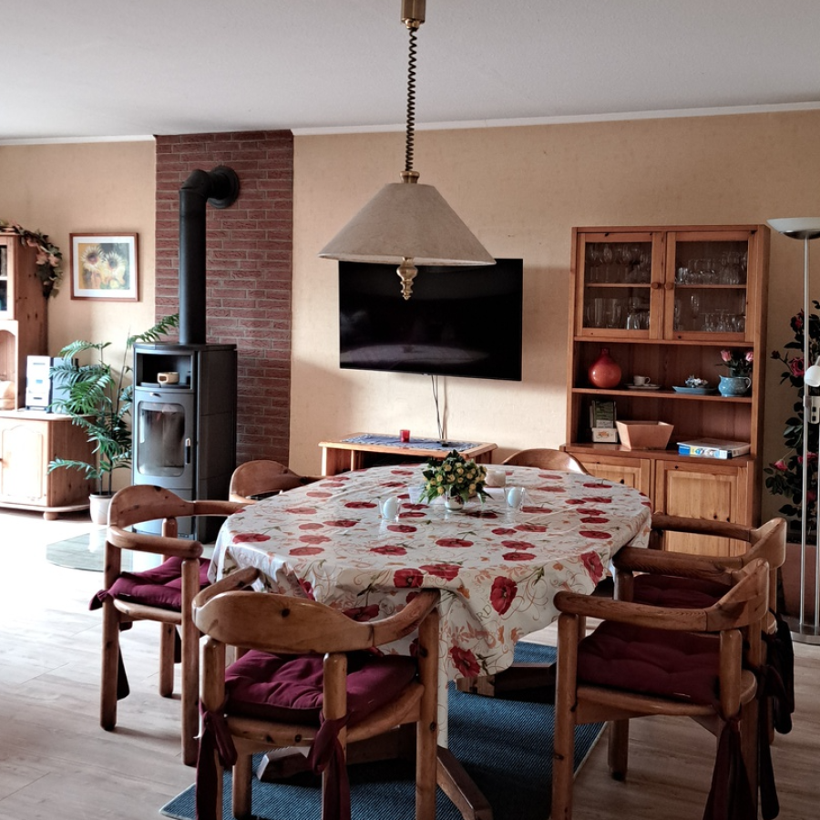 Hunde sind bei uns willkommen und kosten nichts extra. Raucher müssen bei uns freiwillig auf die Terrasse. Ein PKW-Platz unter dem Carport und weitere Stellplätze stehen unseren Gästen zur Verfügung. Auf Anfrage können Kinderhochstühle gestellt werden. Ein Kinderbett ist auf Wunsch möglich. WLAN/Glasfaser ist vorhanden.